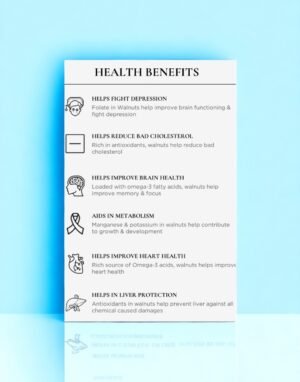 Kashmiri walnut kernels are known for their exceptional nutritional value and long list of health benefits. Regular consumption supports heart health, brain function, bone strength, digestion, and overall immunity.